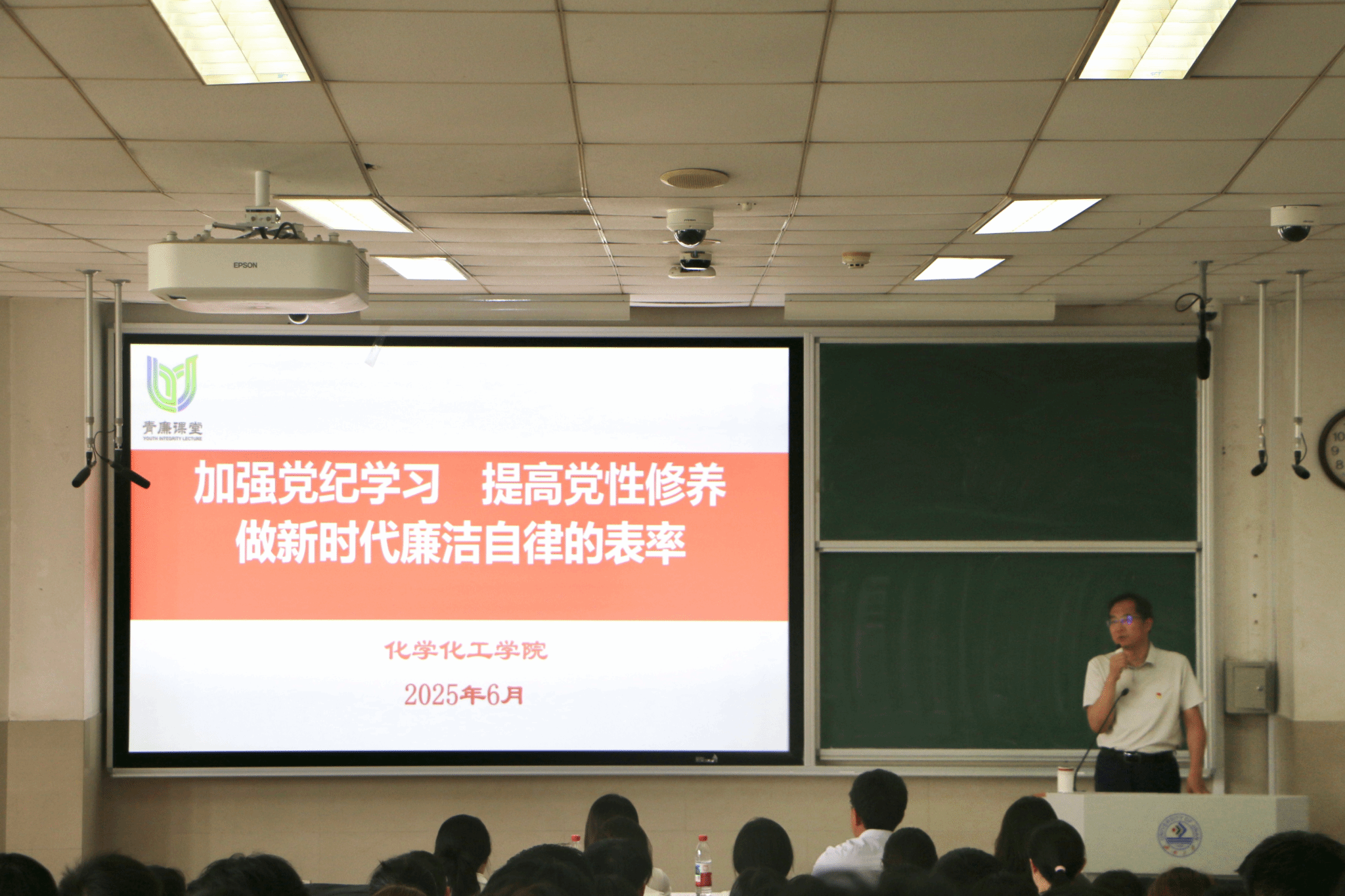 贺铭以《加强党纪学习教育 提高党性修养 做新时代廉洁自律的表率》为主题,为毕业生党员带来一堂兼具理论深度与思想深度的党课。他结合党史中党的纪律建设历程,阐述了中国共产党始终将廉洁作为政治本色的深刻内涵;通过贴近生活的鲜活案例,以案释纪、以案明责,警示毕业生党员要时刻坚守纪律底线。他强调,毕业生党员即将踏入社会,要始终牢记党员身份,将廉洁初心融入工作和生活的方方面面,让廉洁成为人生最鲜明的政治底色。