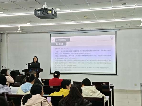 学校心理指导中心主任蔺琦琦以“大学生心理问题识别与干预”为主题作专题讲座。她结合典型案例剖析大学生常见心理困扰,系统讲解心理危机早期识别信号、干预流程及谈心谈话技巧,同时针对班主任情绪压力管理给出建议,并分享实用减压方法。