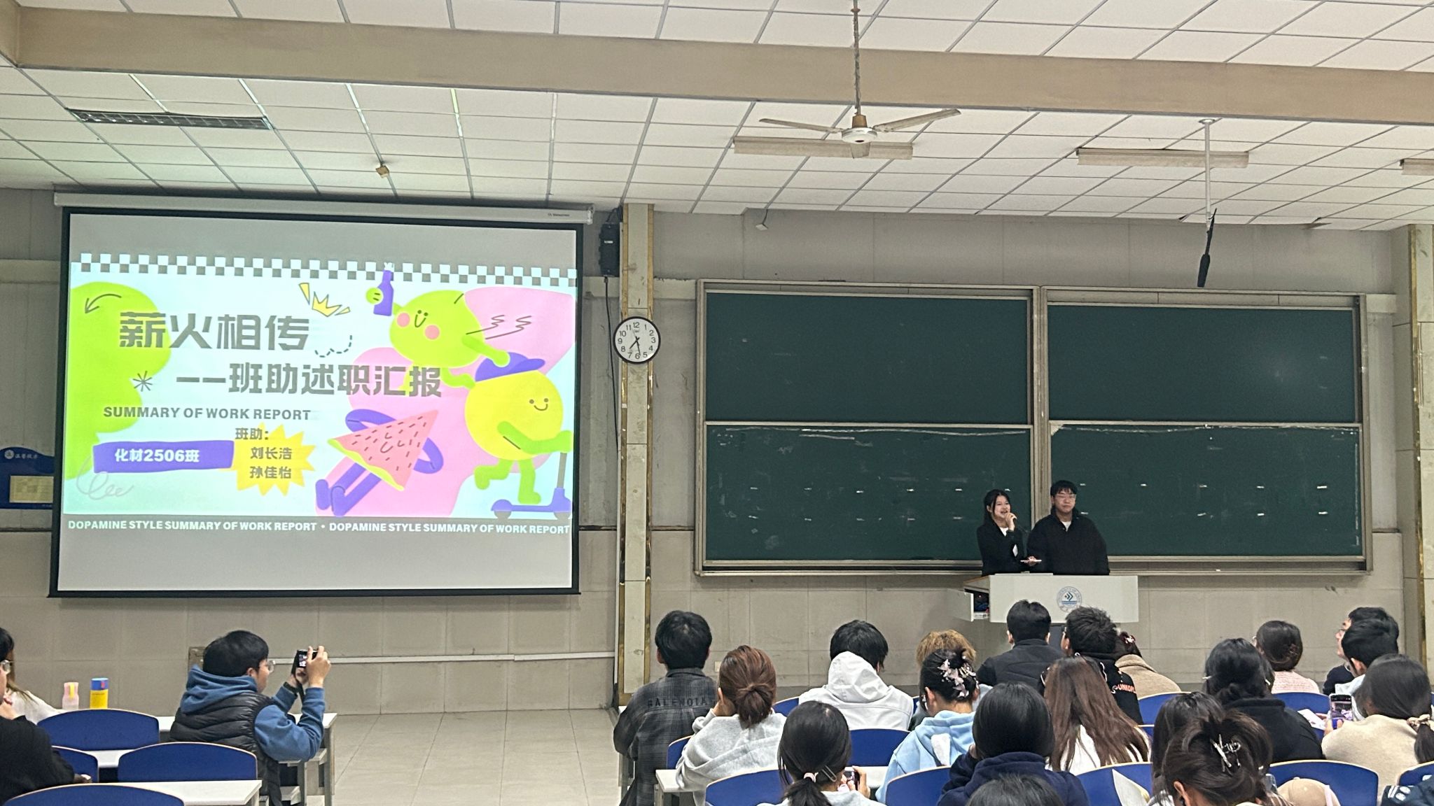 会上,18个新生班级的36名班助依次述职,结合自身工作经历与感悟,全面回顾了从开学筹备到新生报到、从军训陪伴到课堂引领的暖心故事,展现了良好风貌与扎实作风。4位班助负责人分别汇报了整体工作推进情况,从统筹协调、分工协作、问题解决等方面总结了工作亮点与经验,并结合实际情况提出了后续工作改进方向与规划,展现了扎实的组织能力与强烈的责任意识。