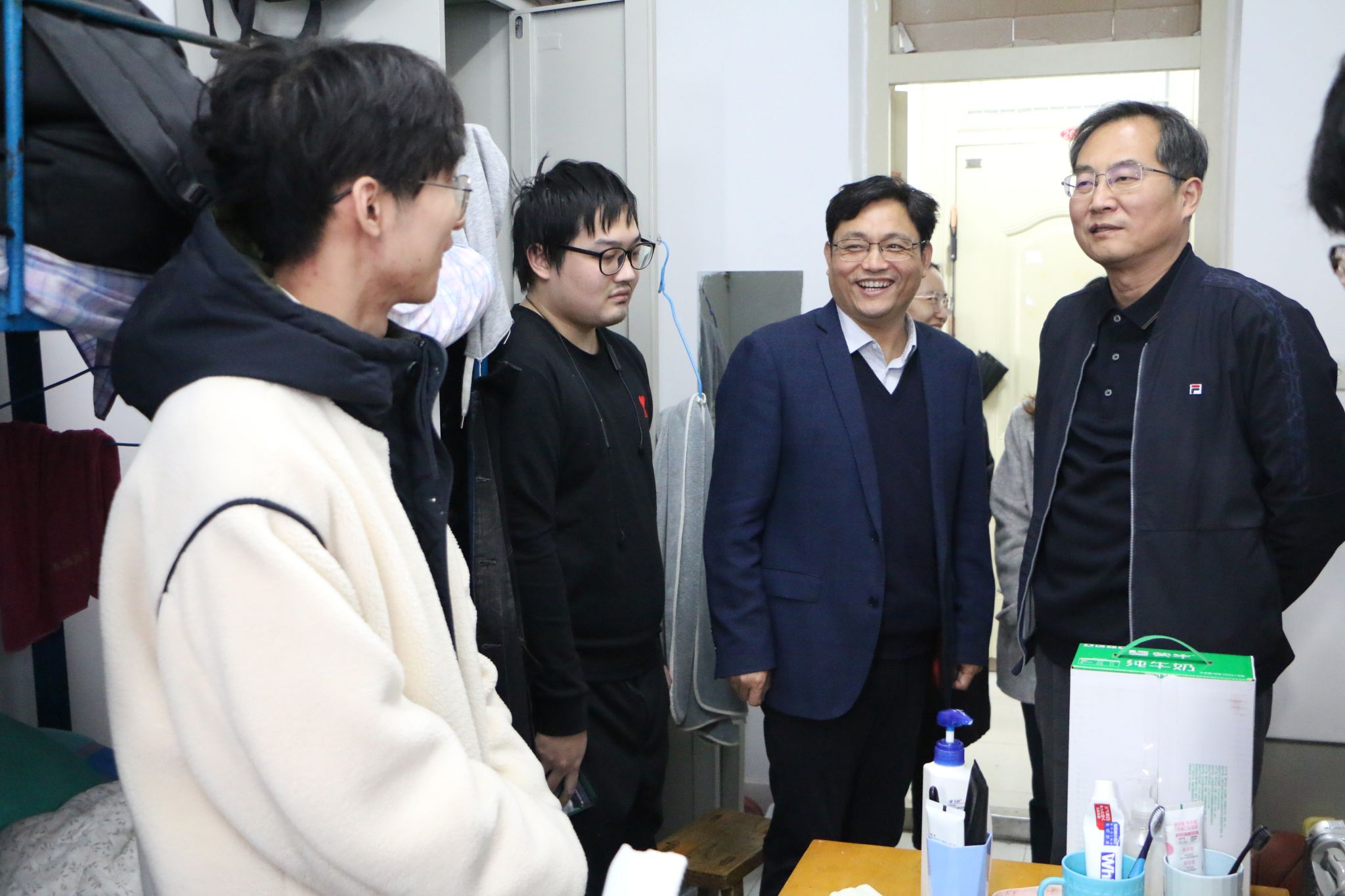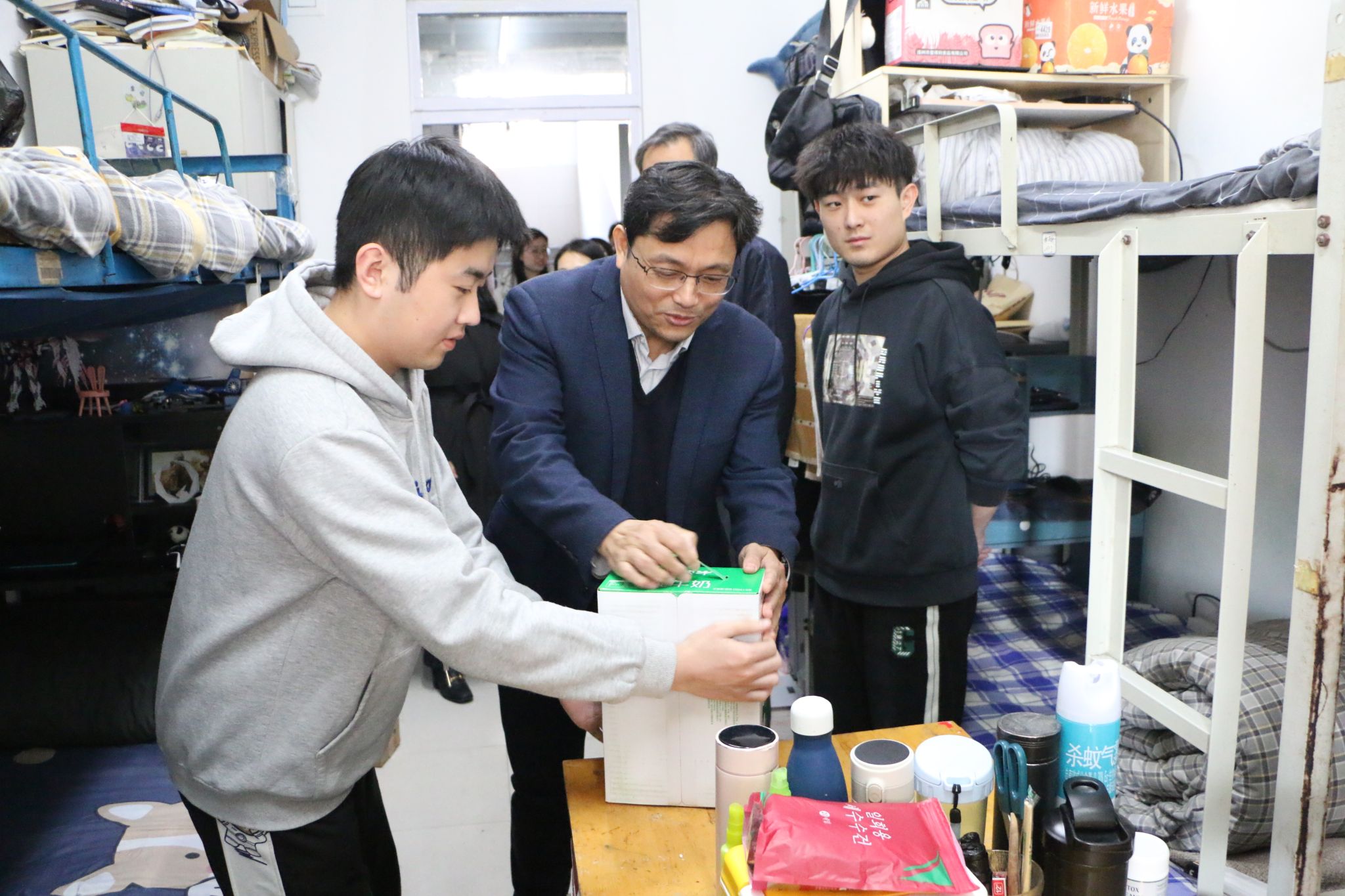 为帮助考研学子缓解备考压力,鼓舞考研士气,坚定考研信心,12月4日中午,tyc41183太阳成集团开展2024届考研慰问活动。学院党委书记贺铭,院长陈国柱,副书记副院长白雪飞及全体辅导员深入学生宿舍进行慰问,为考研学子发发放慰问品。
