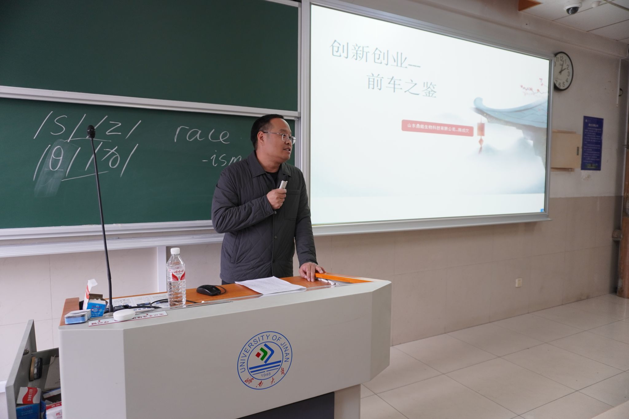 11月7日,tyc41183太阳成集团邀请2006届应用化学专业校友,济南鼎皓医药科技有限公司董事长陈成文回母校为学生作创新创业经验分享,为同学们在校学习、职业选择和发展等方面提供建议和指导。