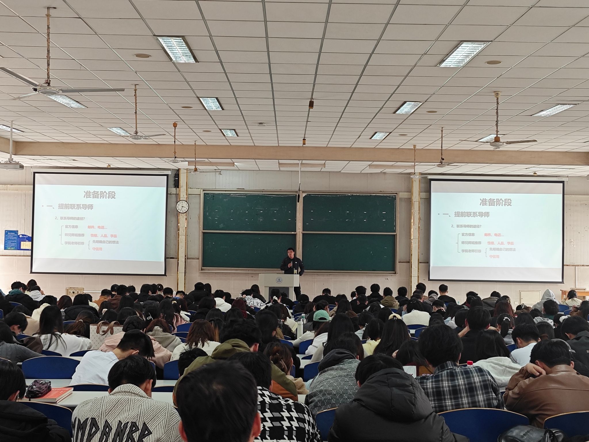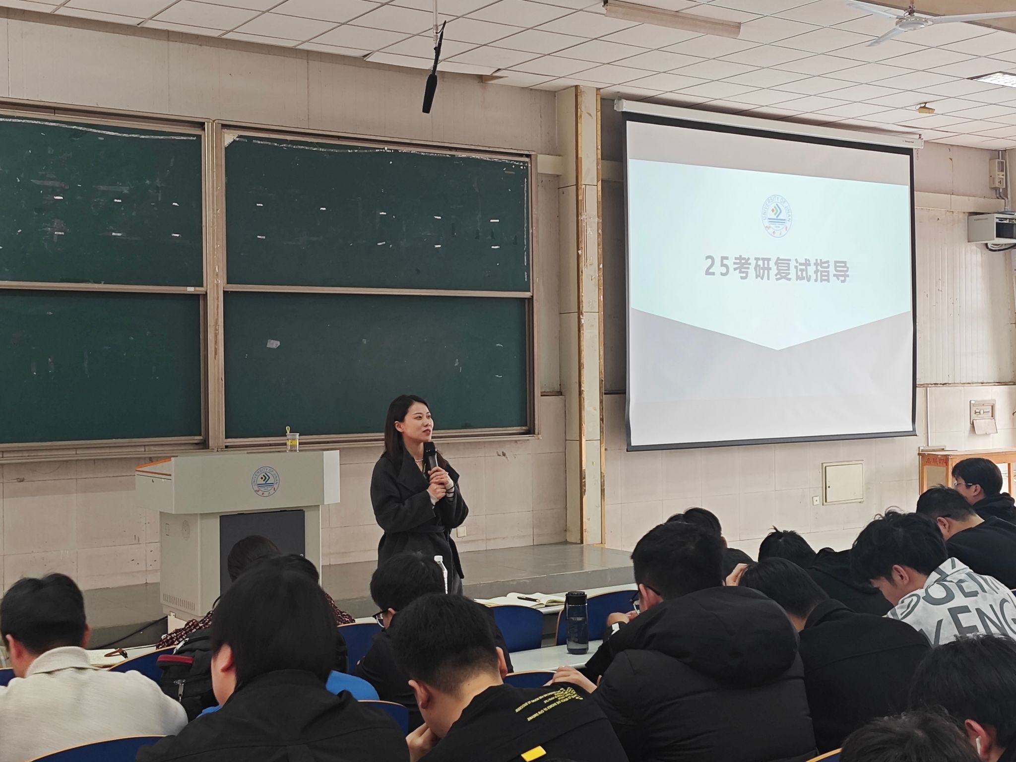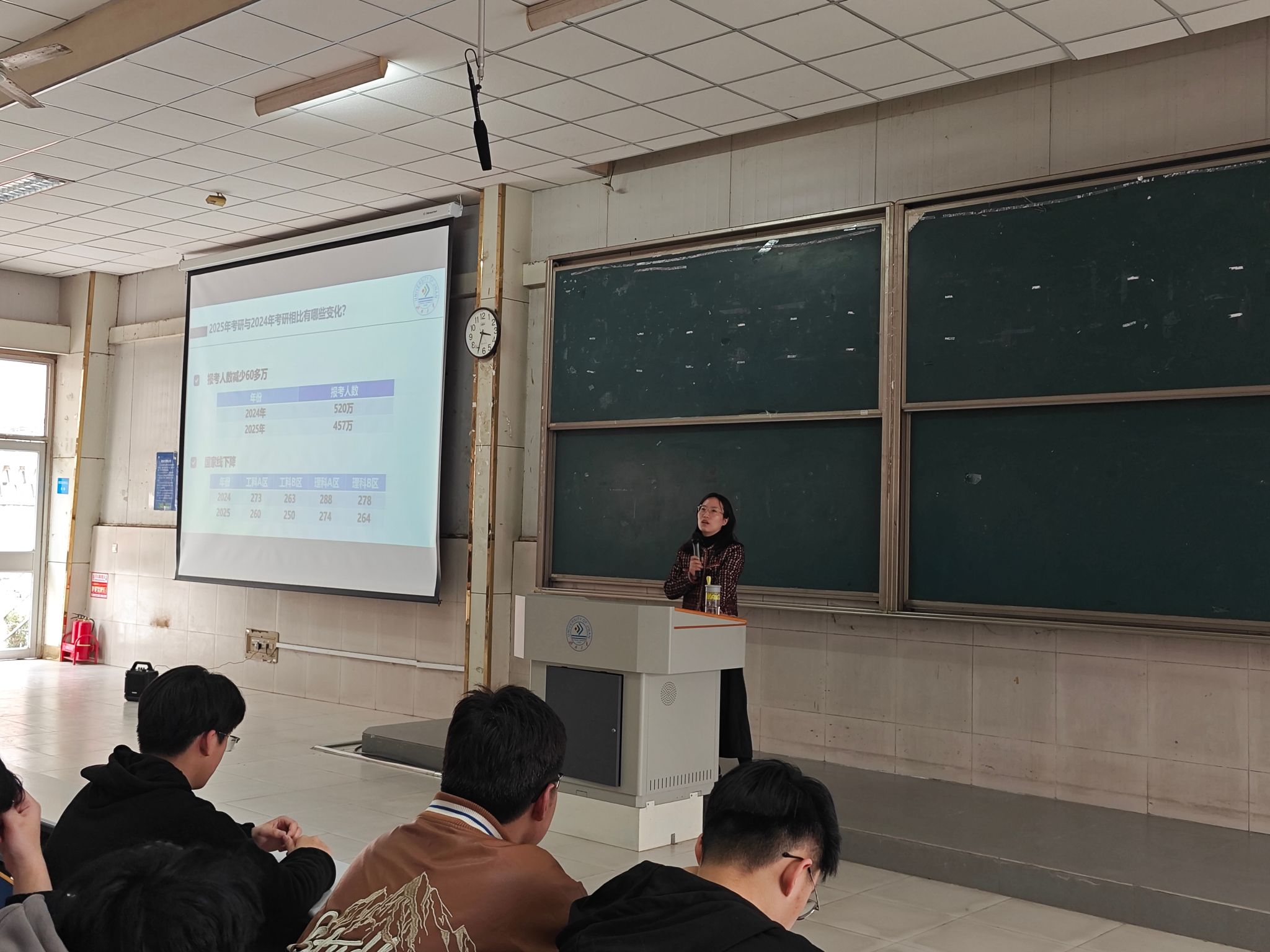 李健慧结合近年考研形势变化,通过数据对比和具体案例剖析,为同学们呈现出近年考研竞争的全貌。她用详实的数据和生动的案例,让学生们了解到考研形势虽有挑战,但也充满机遇,提振了学生们的复试信心。她提醒学生们在复试准备过程中要多问、多练、多想,充分做好各方面准备,以积极的心态迎接复试,鼓励学生们勇往直前,相信自己能够取得理想成绩。