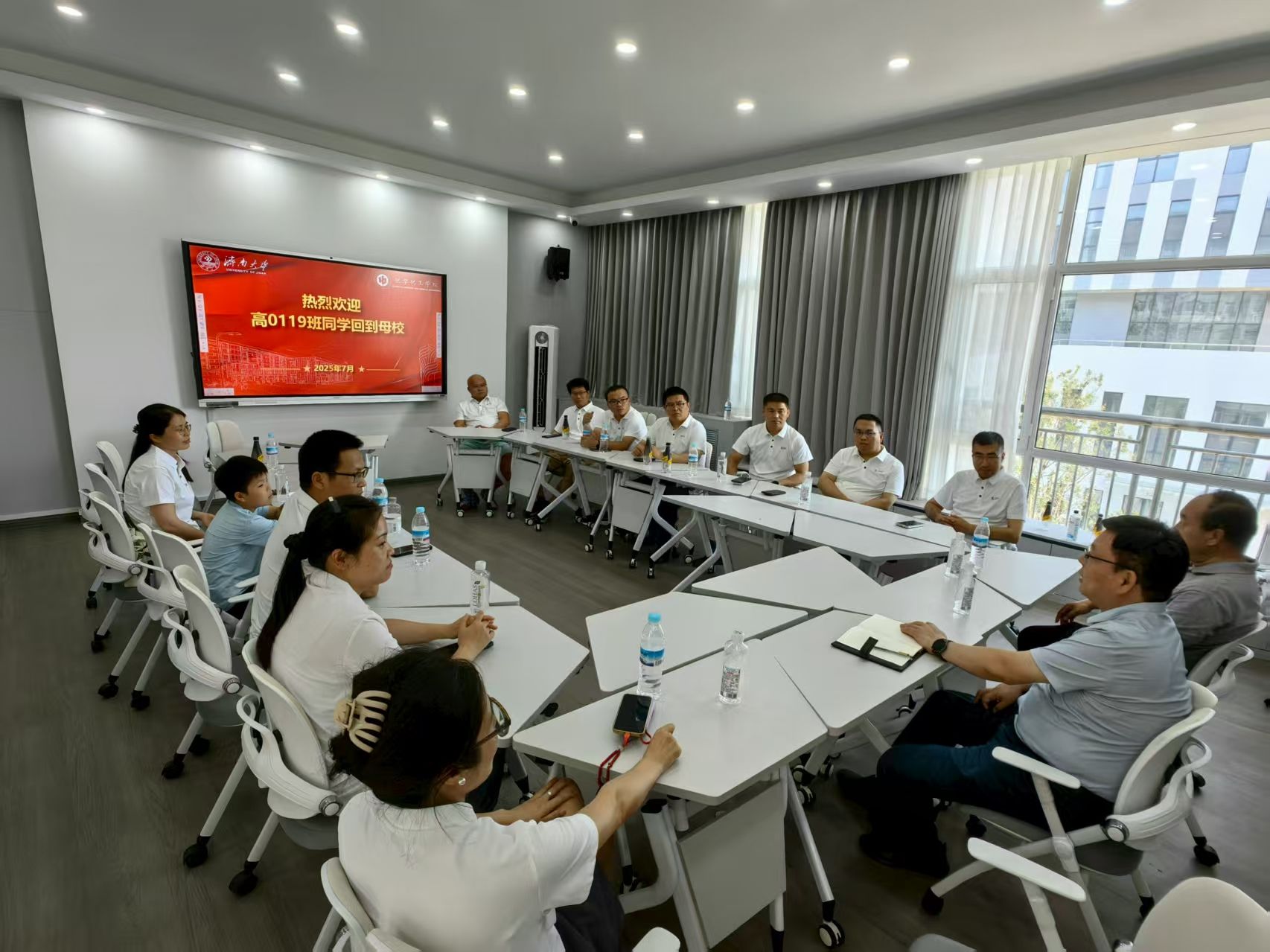 7月5日,tyc41183太阳成集团高分子材料与工程0119 班毕业20年座谈会在逸夫科学楼顺利召开。近20名高0119班校友重返校园,共忆校园岁月,共话发展情谊。
