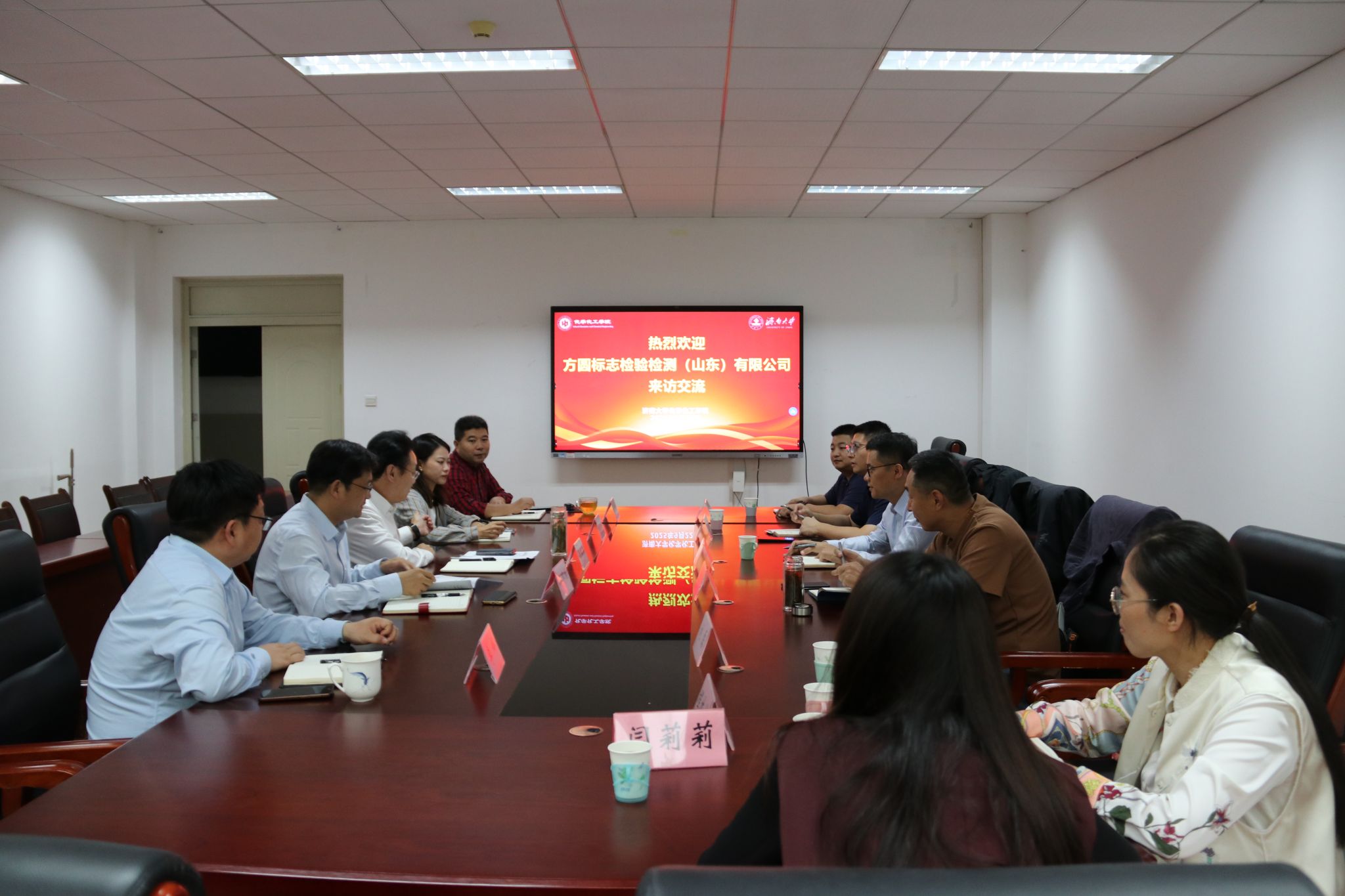 学院党委书记于龙泉对方圆标志检验检测(山东)有限公司一行的到来表示热烈欢迎。期待双方通过座谈交流进一步明确合作内容、拓宽合作领域、创新合作模式,实现“资源共享、优势互补、互利共赢”的美好愿景。