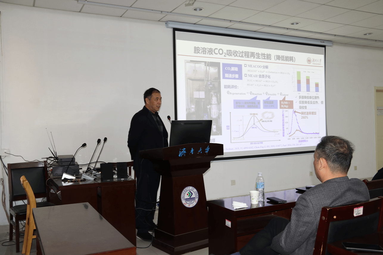 梁志武教授作了题为“化学吸收法捕获二氧化碳的化工基础与工程示范”的学术报告。他首先从“双碳”国家战略需求出发,系统阐述了化学吸收法捕获CO₂技术的科学基础、技术原理及其在应对气候变化中的重要意义。随后,梁志武教授结合其团队在国家自然科学基金重点项目、国家重点研发计划等课题支持下取得的研究成果,深入讲解了高性能吸收剂的设计开发、吸收-解吸过程强化、系统集成优化等关键科学问题与工程实践,并通过详实的实验数据和工程案例,展示了该技术在能耗降低、效率提升及工程示范应用方面的突破性进展。