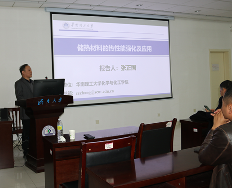 张正国教授作了题为“储热材料的热性能强化及应用”的学术报告。他指出,储热技术,特别是相变储热技术,是实现碳达峰、碳中和目标的关键技术之一,其核心在于高性能相变材料及高效储热器的开发。张教授系统介绍了其团队在传热强化与相变储热技术领域的最新研究成果。在材料制备层面,张教授团队致力于通过多孔基体封装、微胶囊封装及与聚合物复合等策略,显著提升相变材料的热物性(如导热系数)并解决其相变过程中的液体流动和泄漏问题。张教授团队利用膨胀石墨等多孔碳材料作为载体,成功制备出系列具有高热导率和优异稳定性的复合相变材料,其导热系数最高可比基础有机物提升二百倍以上,接近60 W/m·K。特别地,张教授团队还开发了一种在120℃附近具有快速、高热量吸收特性的材料,用于抑制电池热失控,展现出显著的安全优势。