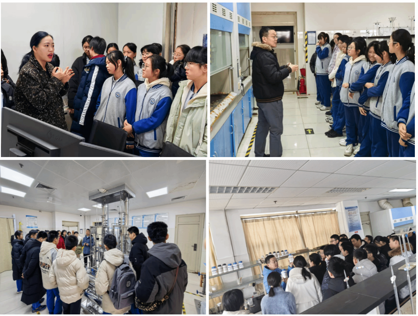 随后同学们有序走进科普长廊,通过图文展板、实物模型、仪器展示等形式,了解太阳概况、发展历程以及近年来在氟化工新材料、精细化学品合成、绿色催化技术、化学测量与健康等方向取得的重要科研成果。最后,姜占坤副教授、张卫民副教授、张诺老师带领同学们依次来到化学化工实验室、大型仪器测试平台,给同学们详细讲解了各类实验装置的工作原理、化学材料的应用场景,从基础化学实验器材到高端科研仪器设备,从化工工艺到前沿纳米技术,同学们在直观感知中拓宽科学视野,感受化学学科的深厚底蕴与创新活力。