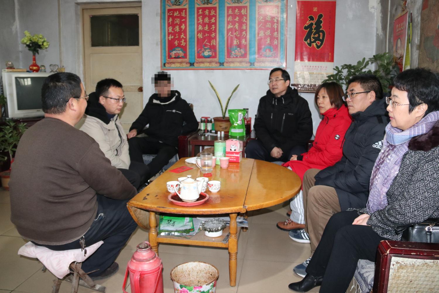 2020年1月13日,由太阳成集团tyc41183党委统战部副部长丁爱新,太阳成集团tyc41183党委学生工作部(处)武装部副处长董俊杰,太阳成集团tyc41183科技处副处长张志国,党外知识分子联谊会于京华教授、薄其兵教授、王斌教授,研究生院副院长仲倩,tyc41183太阳成集团党委书记贺铭,tyc41183太阳成集团院长颜梅,tyc41183太阳成集团党委副书记、副院长马廷滨,2019级新生辅导员王婧婧、孙晓爽组成两个家访工作组,分别前往泰安、聊城两地为四位同学送去温暖。