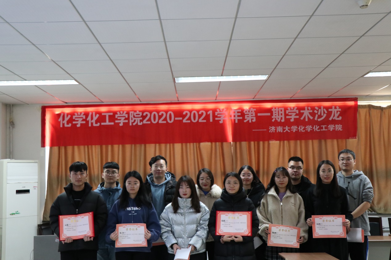 活动经过线上前期预热和线下海报宣传,2020级同学踊跃报名参与,共有22名同学提交比赛PPT,经过严格的筛选和指导,共选出15名汇报人参与最终PPT答辩。活动伊始,参赛的各位同学进行积极交流,分享各自现阶段的研究方向以及科研进展等,同学们的讨论和交流都很热切深入,到场嘉宾也对其进行答疑和指导,指出不足的同时也给予肯定和鼓励。同学们的演讲涉及到了功能催化剂串联催化、电化学免疫传感器、三效催化剂的制备、含氟聚合物制备与应用和金属表面改性等多领域不同学科前沿产物的交叉,思想火花的碰撞最容易产生灵感,同学们唯恐错过精彩的细节,认真聆听的同时不断记下好的想法,并提出自己的疑问和见解,在有序的交流中收货满满。活动进入尾声,到场的同学们感到意犹未尽,期待着下一次的学术交流。本次活动评选出一等奖2名、二等奖4名、三等奖6名,活动最终在合影留念后圆满落幕。