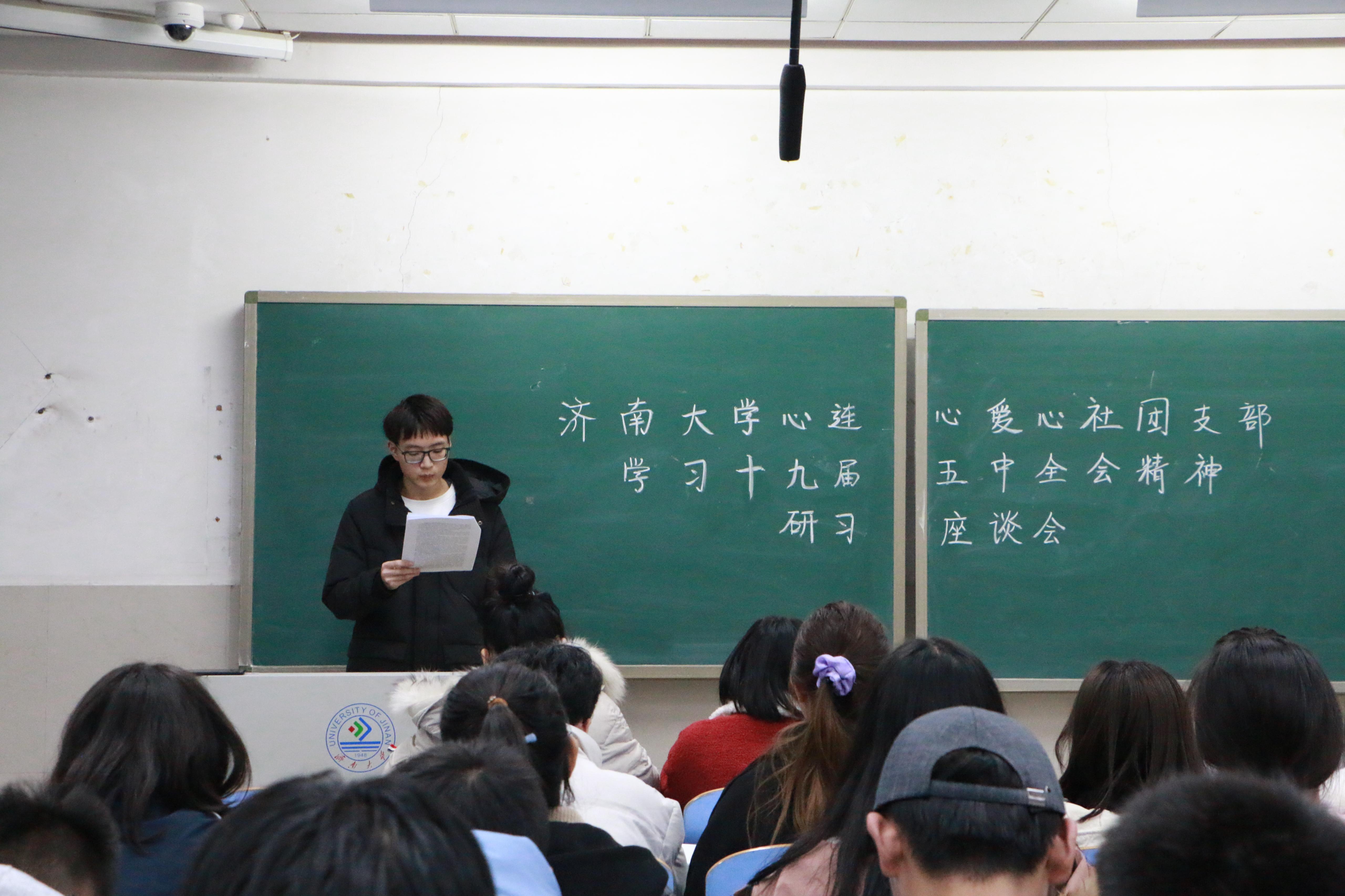 为了让同学们了解和学习中共中央关于制定国民经济和社会发展第十四个五年规划和二〇三五年远景目标的建议,太阳成集团tyc41183心连心爱心社在11月23日于第十教学楼204教室举办了“学习十九届五中全会精神研习座谈会”活动,心连心爱心社部长团成员和各部门志愿者代表参加了本次会议。