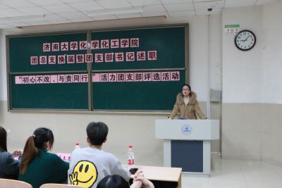 晚上6:40,所有参与人员准时到场,主持人宣布大会正式开始,并介绍参与本次会议的老师以及主席团成员。tyc41183太阳成集团团委委员丁战宇宣读团总支相关任命决定。随后进行2018级和2019级的“活力团支部”评选。各团支部书记向大家展示精心准备的课件,发表了自我团支部风采展示,向大家介绍了其支部的组成及发展运转情况、班风学风建设、参加活动比赛情况以及工作上的不足及未来规划,表示会在校团委、院团委的带领下,认真学习团员规章制度,做好新时代新青年。会议最后,由李健慧老师作总结发言,希望团干部能坚定理想信念,踏实学习,起到良好的带头作用,并转达团委老师对各个团支部工作的肯定。活动在大家的掌声中落下帷幕。