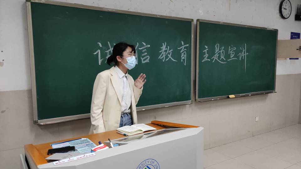 为深入推进资助育人,增强学生的诚信意识和责任担当,加强诚信教育、感恩教育、励志教育,引导学生树立正确的消费观和价值观,增强学生的社会责任感,tyc41183太阳成集团于5月24日晚8点45分在第十教学楼203教室举办“诚信教育主题宣讲”活动。本次活动由借款部分同学及学生会部分同学参与。