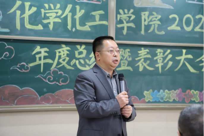 陈国柱副院长代表学院作2021年度工作总结,全面回顾了学院一年来在人才培养、教育教学、学科建设、科研创新、师资队伍、学生管理和服务社会等工作中取得的成果,肯定和鼓励了全院教职工在2021年取得的优异成绩,并对学院2022年的工作提出期望,指明方向。