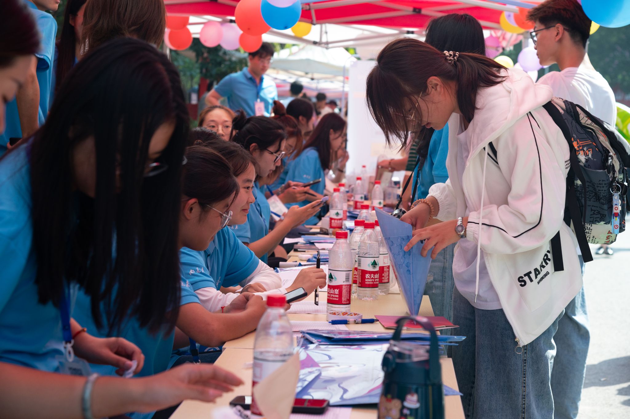 迎新现场,我院新生班助、学生骨干、学生党员及志愿者们积极参与,为新生准备并发放入学大礼包,引导并协助新生顺利完成报到,耐心解答学生及家长的疑问,保证迎新工作有序进行。各式各样的迎新标语牌、打卡相框和巨幅签名墙吸引了众多新生前来打卡拍照,记录下这一美好的瞬间。