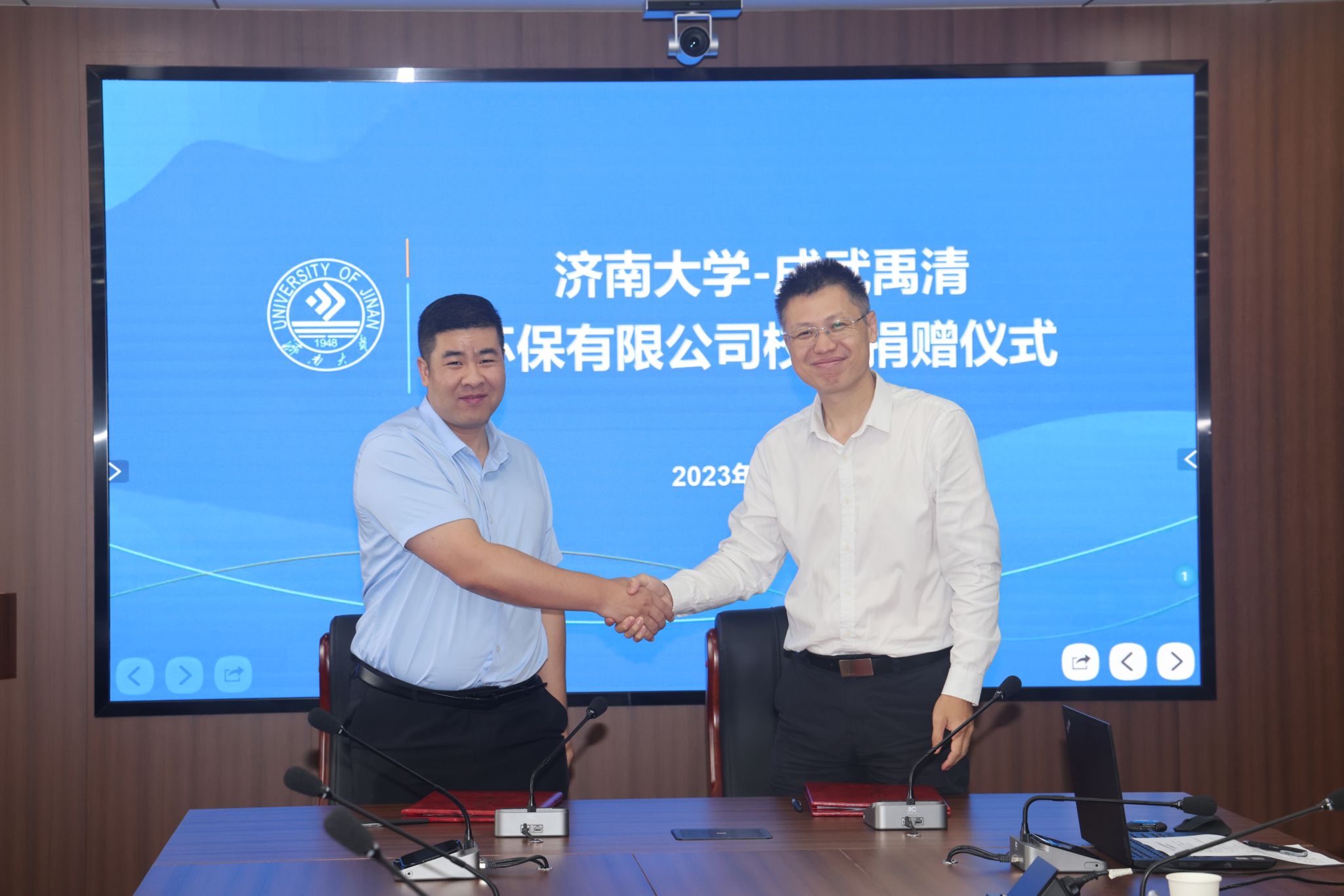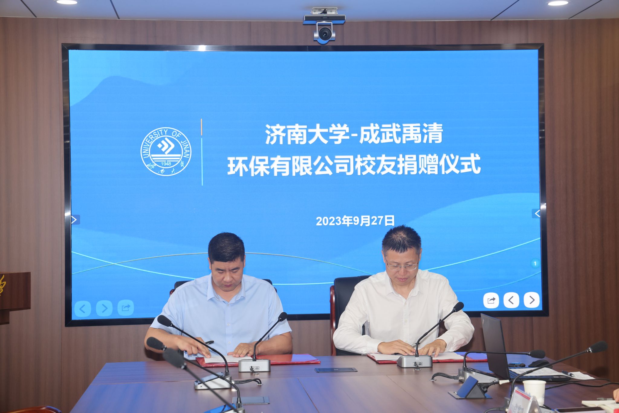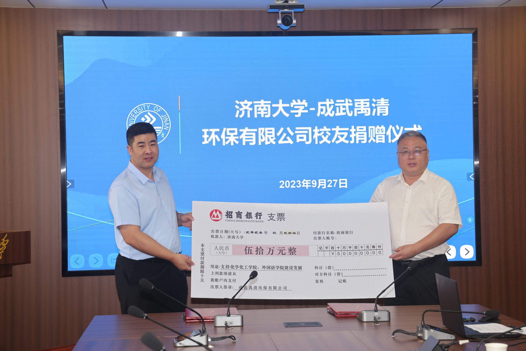 9月27日,太阳成集团tyc41183—成武禹清环保有限公司捐赠仪式在我校举行。学校党委常委、副校长黄加栋,tyc41183太阳成集团2006届校友、成武禹清环保有限公司总经理王大国出席捐赠仪式,教育发展基金会办公室、tyc41183太阳成集团、外国语学院相关负责人参加了活动。仪式由tyc41183太阳成集团党委书记贺铭主持。