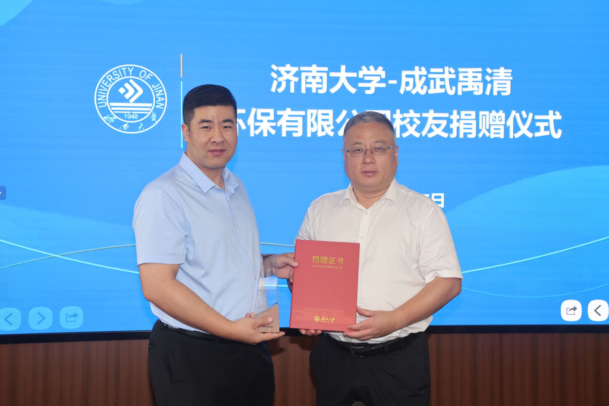 王大国回顾了他的求学时光和工作经历,表达了对学校的深厚感情和对教育事业的关注支持。毕业后,时刻铭记“艰苦奋斗、凝心聚力、追求卓越”的济大精神,学校高质量的教育教学水平和良好的育人环境使他在知识和能力上得以快速成长,希望通过此次捐赠活动为建设母校美好未来贡献一份力量。