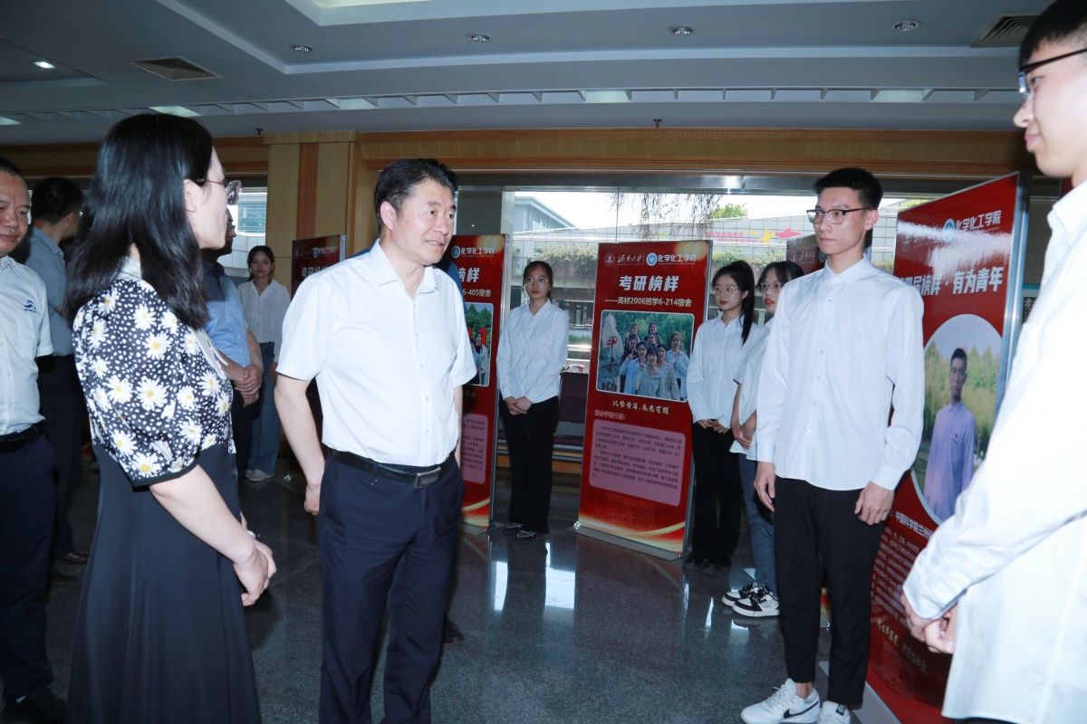 表彰大会前,领导嘉宾参观了tyc41183太阳成集团第四届“榜样·有为青年”优秀学生事迹展,并与榜样团成员代表进行了亲切交流。