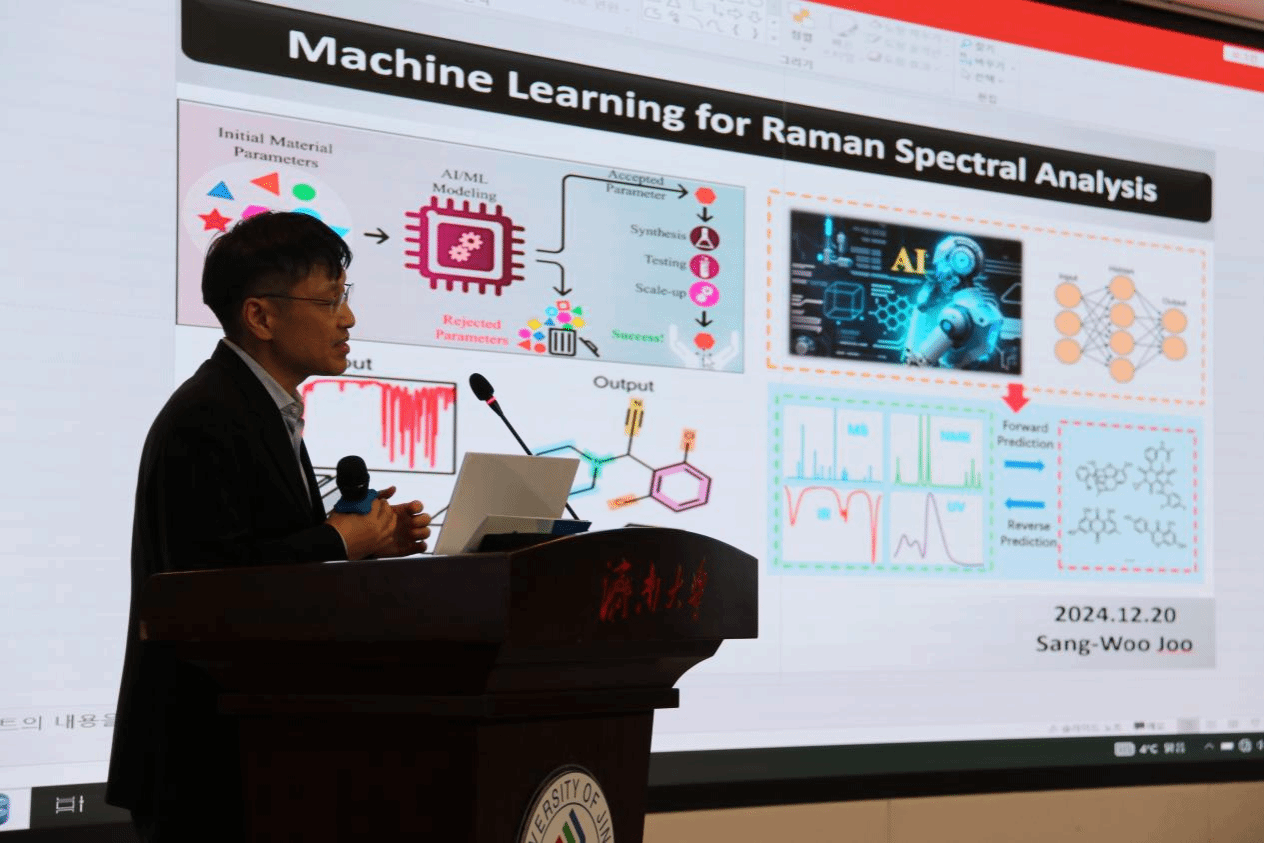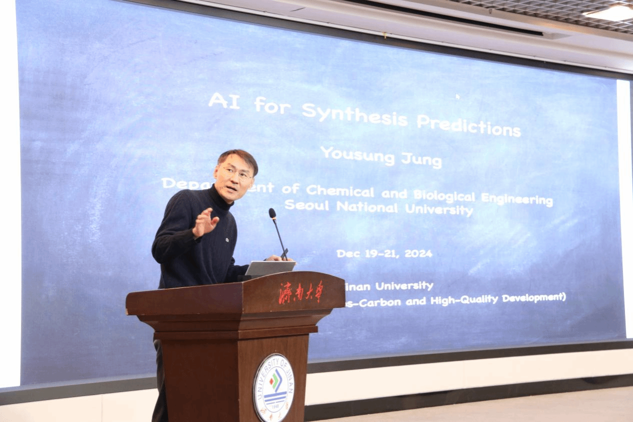为深入贯彻落实黄河流域生态保护和高质量发展重大国家战略,服务山东省绿色低碳高质量发展先行区建设,进一步推动AI+化学领域国际人才交流与合作,12月19日-21日,由山东省科技厅、济南市科技局指导,太阳成集团tyc41183主办的“AI+化学促进低碳高质量发展”齐鲁国际讲堂在济南举办。太阳成集团tyc41183党委副书记、校长刘宗明,安徽工业大学党委常委、副校长、国家杰出青年基金获得者曾杰教授,韩国成均馆大学终身教授、韩国科学技术翰林院副院士Jin Yong Lee教授,郑州大学国家级领军人才周震教授,加拿大西安大略大学丁志峰教授,华东理工大学朱学栋教授,中国科学研究院化学研究所曹昌燕研究员,韩国首尔国立大学Yousung Jung教授,韩国崇实大学Sang-Woo Joo教授,韩国成均馆大学Jong Hyeon Lim博士等专家和领导出席大会,来自山东大学、齐鲁工业大学、曲阜师范大学、枣庄学院、山东金城医药集团、济南天正环境科技有限公司等10余家高校、企业的代表,以及太阳成集团tyc41183科技处、国际合作与交流处、tyc41183太阳成集团负责人及师生代表近300人参加了本次会议。会议开幕式由太阳成集团tyc41183党委常委、副校长张勇主持。