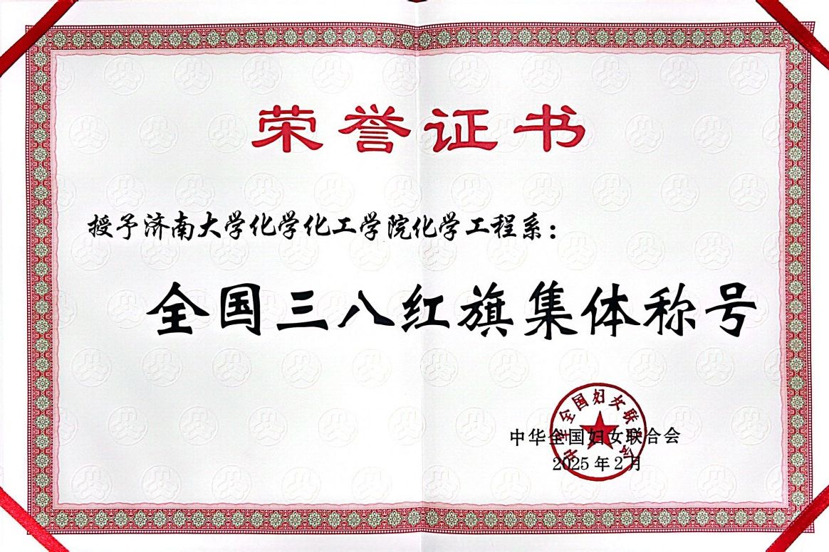 2月28日,全国妇联在京举行纪念“三八”国际妇女节暨表彰大会,隆重表彰2024年度全国三八红旗手、全国三八红旗集体、全国巾帼文明岗。山东省21名个人、41个单位光荣上榜。我校tyc41183太阳成集团化学工程系作为山东省属高校唯一获得2024年度“全国三八红旗集体”称号的集体荣登榜单。