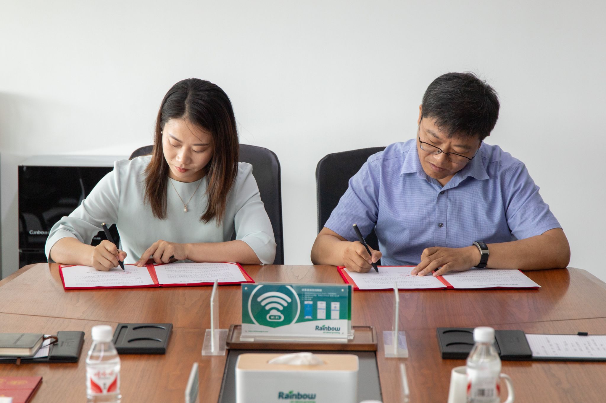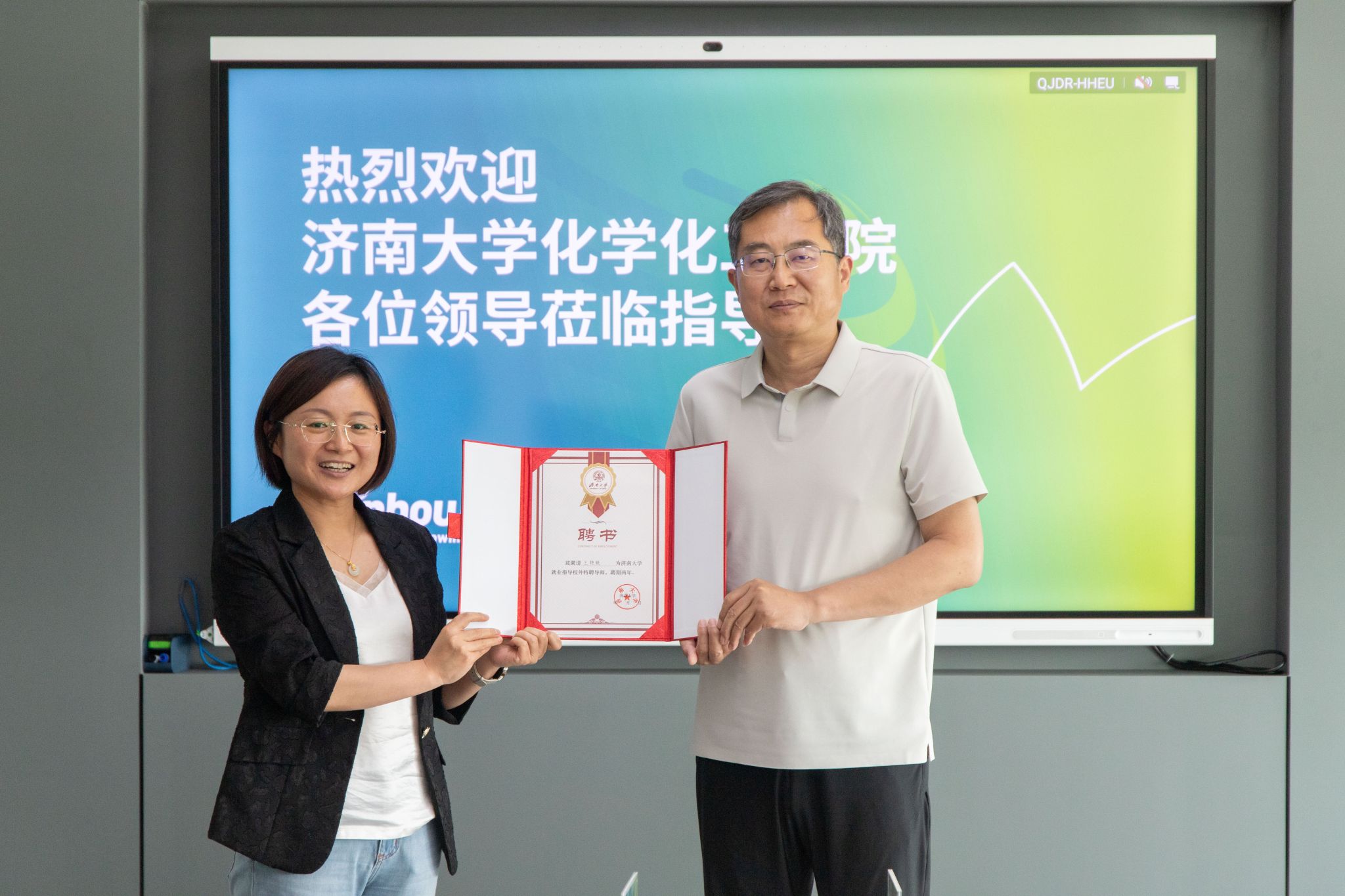 为促进校企资源对接,搭建人才共育平台,双方签署《太阳成集团tyc41183毕业生就业实习基地》协议并揭牌,贺铭为润丰化工股份有限公司招聘经理王艳艳颁发太阳成集团tyc41183“就业导师”聘书。
