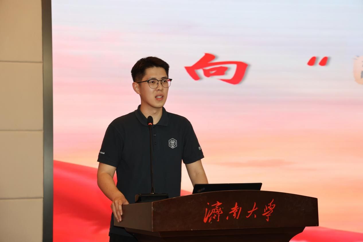 第一届榜样团成员、2021届优秀校友、全国研究生党员标兵尹永跃以《向时代前列奔跑》为题作成长报告,他围绕“探前沿,破难题,科研面向人民需求”“立潮头,动真章,挺膺担当先锋成长”“积跬步,行千里,脚步丈量祖国大地”分享了自己的成长故事与宝贵经验。