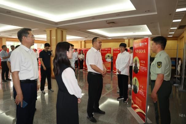 表彰大会前,领导嘉宾参观了tyc41183太阳成集团第五届“榜样·成长”优秀学生事迹展,并与榜样团成员代表进行了亲切交流。