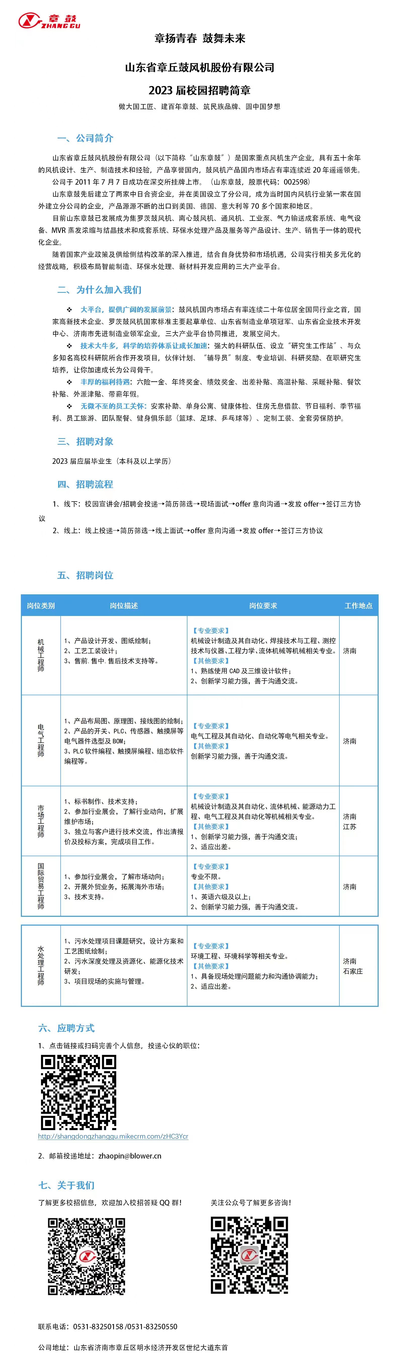 山东省章丘鼓风机股份有限公司2023届校园招聘简章