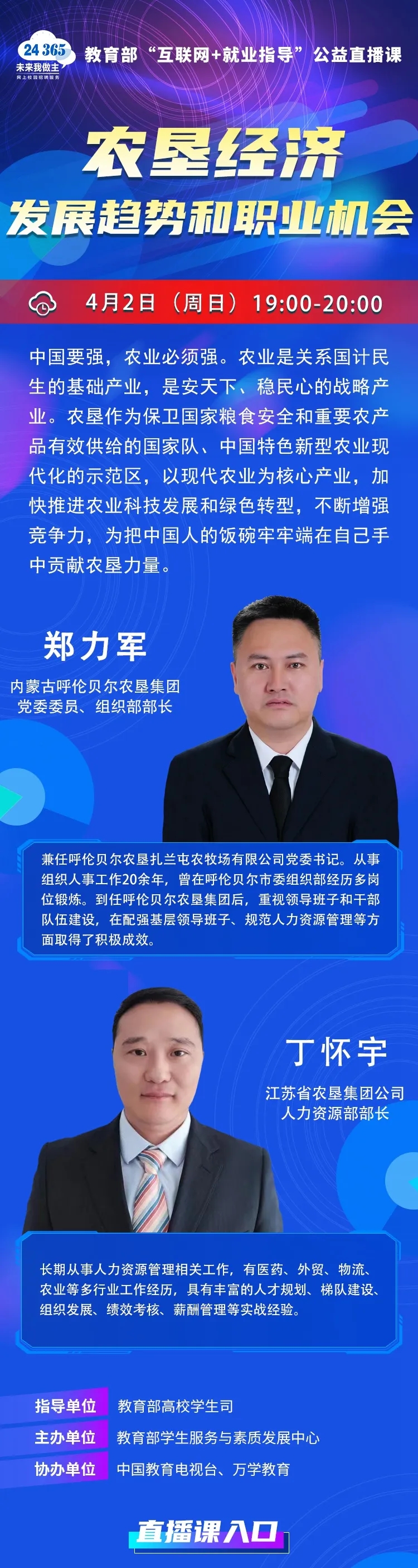 课程预告 | 教育部“互联网+就业指导”公益直播课:农垦经济发展趋势和职业机会