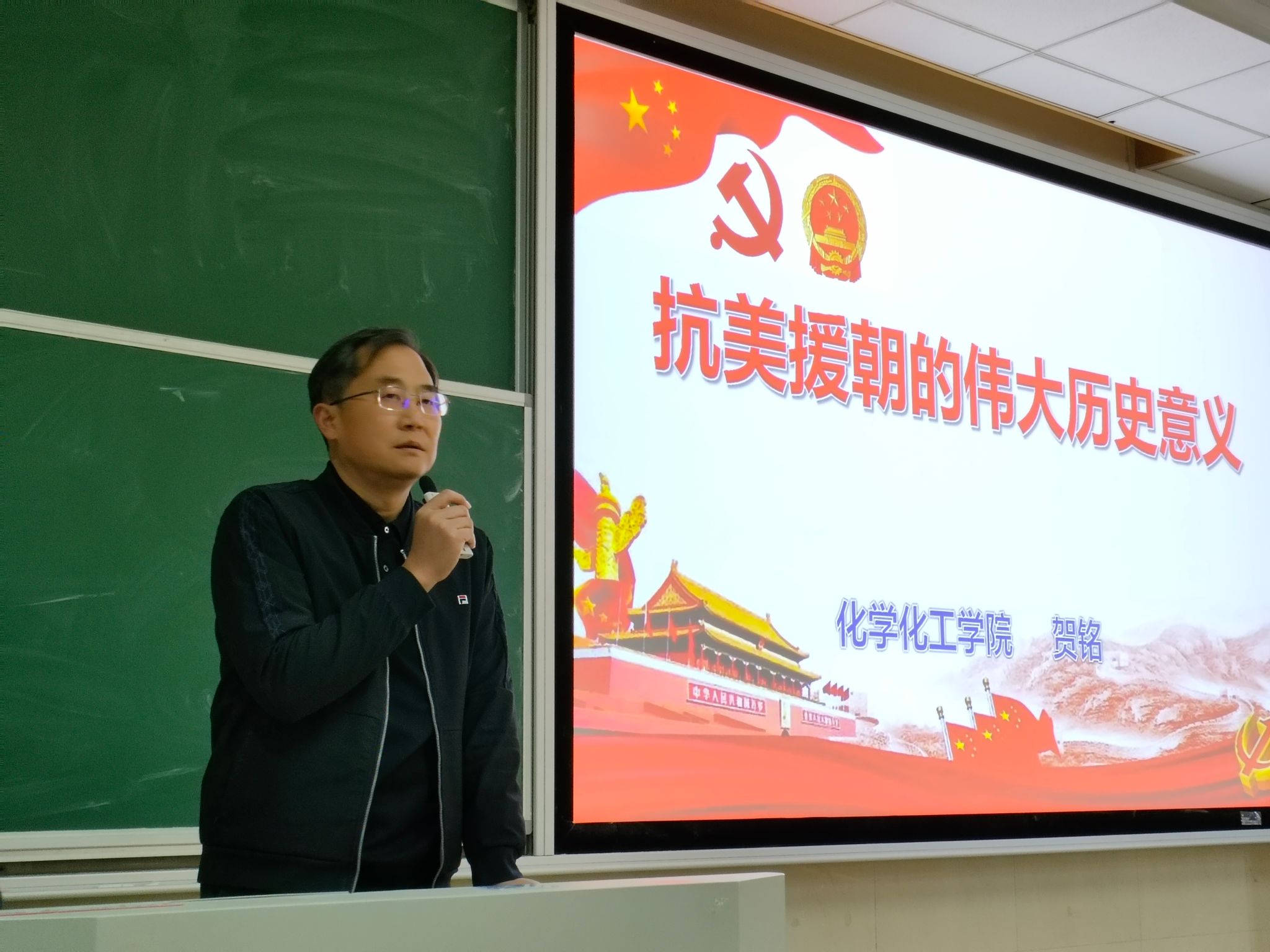 为弘扬伟大的抗美援朝精神,传承红色基因,赓续共产党人精神血脉,12月3日上午,tyc41183太阳成集团在11教2101组织开展了“抗美援朝的伟大历史意义”主题党课。党课由学院党委书记贺铭主讲,150余名入党积极分子参加学习。